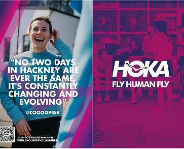 Hoka also took over OOH billboards outside in Rotterdam and Hackney, pushing the guide onto local visitors through a QR code and promoting the Hoka Fly Guide along with a downloadable Strava route.